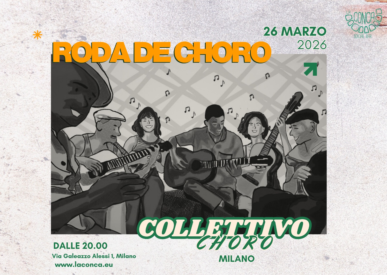 Torna alla Conca il Collettivo Choro Milano con una "Roda de Choro": una serata di musica strumentale brasiliana dal ritmo jazz e coinvolgente. Lasciati trasportare insieme a noi!