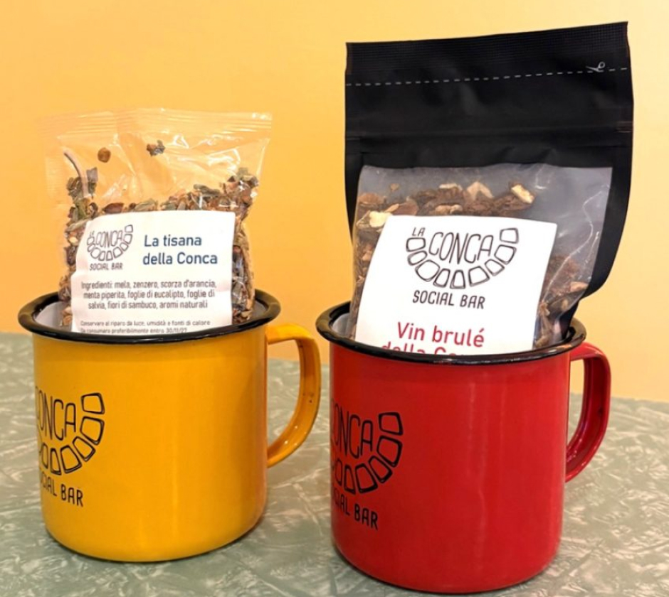 Disponibile in due versioni: gialla con la nostra tisana rilassante o rossa con preparato per vin brulé.